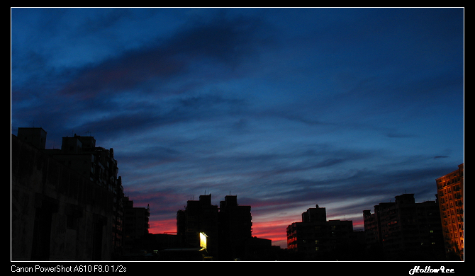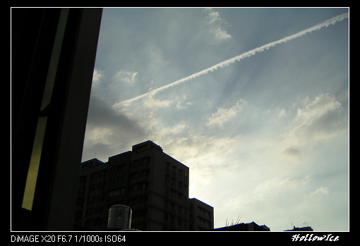 偶然發現窗後的景色,拿起唯一的A610,盡量以眼睛看到的畫面下去調整相機,意外拍成了這張相片。用軟體切成16:9後原圖縮小,看起來比原始檔多了些味道~可惜的是那巨幅招牌突兀的矗立,但也成了寫實紀錄的一步分。