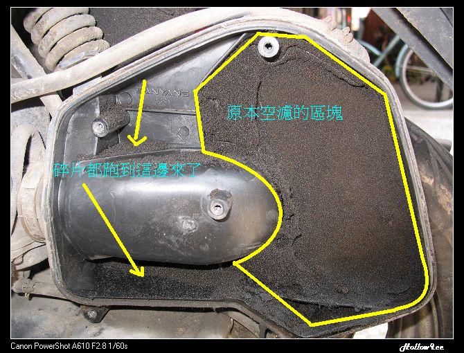 雖然說在狼版已經有車有貼上詳細的更換過程,不過我還是忍不住寫了這邊,也順便整合了一些其他的小細節,初有興趣自己保養車子的網友可以參考這篇圖文.空濾不保養,會如何?基本上現在很多車子都是使用紙製濾心來過率空氣,不過我們國產打檔車大多都是使用海綿濾心,海綿這東西,久了會變脆,粉化,就如下面這三張久未保養此區塊的老Dio照片所示~ 基本上如果不是因為吹漏氣系統的油跑道空濾裡面,使得空濾因為油的黏性勉強還連結在一起,海綿早就碎掉.海綿碎掉的話基本上車子會有極高的顧路機率,因為這個空濾就是你化油器進氣的防線,他是用來過濾你空氣中的灰塵雜質,以免阻塞化油器,但是空濾自己碎掉,可是比不裝空濾還糟糕,大顆粒的雜質整個吸進去,要處理可是要拿出維修遙控引擎的精神哩~雖然說我們野狼有攔阻網,不過空濾一個副廠的40元不到,原廠的60不到,不用使用到那種程度吧? 不過如果你想省錢,還可以用洗的,可以多使用一次到兩次(端看空濾海綿是否開始硬化,只要硬化就該換了),基本上原廠側蓋雖然寫使用肥皂水來洗,但是我建議使用煤油來洗,主要是因為這種空濾他是含油的,油遇到肥皂會乳化,我自己的經驗是乳化後不論再怎麼搓洗,就是會有乳化的油塊卡在海綿中心,結果這個空濾雖然可以繼續用,卻沒辦法有原本的空氣流量,所以用煤油的狀況會好的多,清洗主要是洗掉塵土不是洗到完全變成可以洗臉程度.清洗過要陰涼處晾乾(不要曬太陽,會加速硬化),等乾了以後在重新上薄薄的"機油"即可(不用多到出汁@@). 除了空濾海綿部份的保養or更換,更換的同時也順便檢查空濾盒本身有無破損,裂開,另外裡面的清潔度也是要保持,有異物雜質都順便清潔掉,另外如果要更詳細,野狼的空濾進氣口是從椅墊下面有個入口,然後延伸到三明治區塊下面的區塊,這部份的管道也是要檢查有無異物,曾經有車友因為管道卡了爬蟲類生物,結果車子進氣不良行車不順,所以也是要定期檢查一下這個區塊. 空濾這東西自己保養真的不難,就算是使用紙濾的其他車種除了濾紙部份不需要上油,平時保養是使用刷子刷乾淨,其他都大同小異,自己保養一次可以省下一瓶飲料的錢,又有DIY的愉快感,Ice當然是自己動手了,而像Ice一樣對車子到了某種程度的基礎瞭解後,自己動手保養某些基本的區塊,也比較容易瞭解車況,一旦有問題的時候也比較能迅速交叉比對出問題,算也是增長知識的過程.